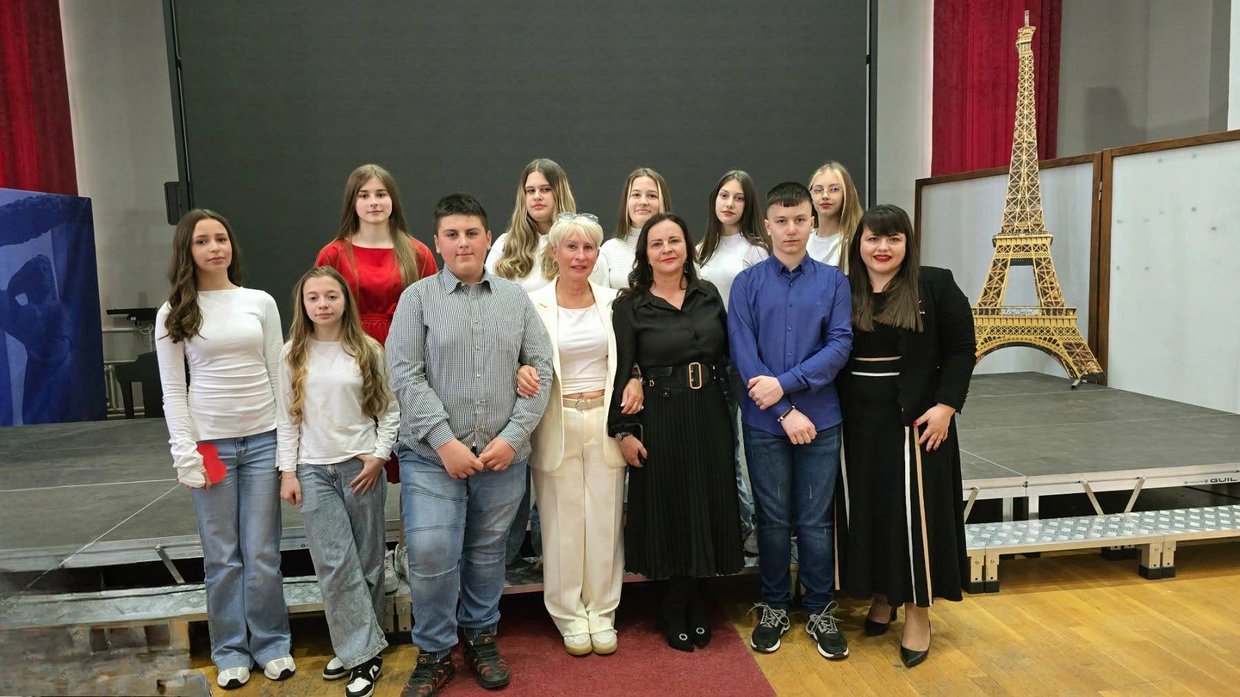 Младите франкофони од нашето училиште, под менторство на проф.Елена Николовска, блескаа на сцената на националниот франкофонски спектакл кој се одржа на 26 март 2026 година во Куманово, во организација на фондацијата Бел Идеал.